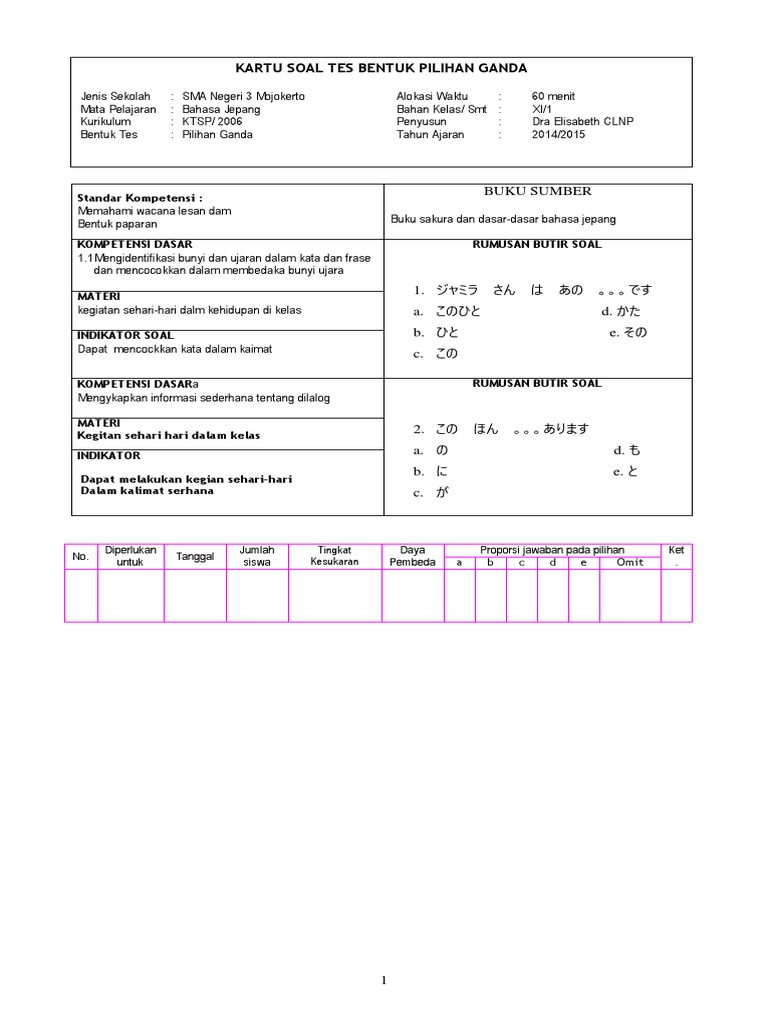 Contoh soal pilihan ganda bahasa jepang dan jawabannya kelas 10.